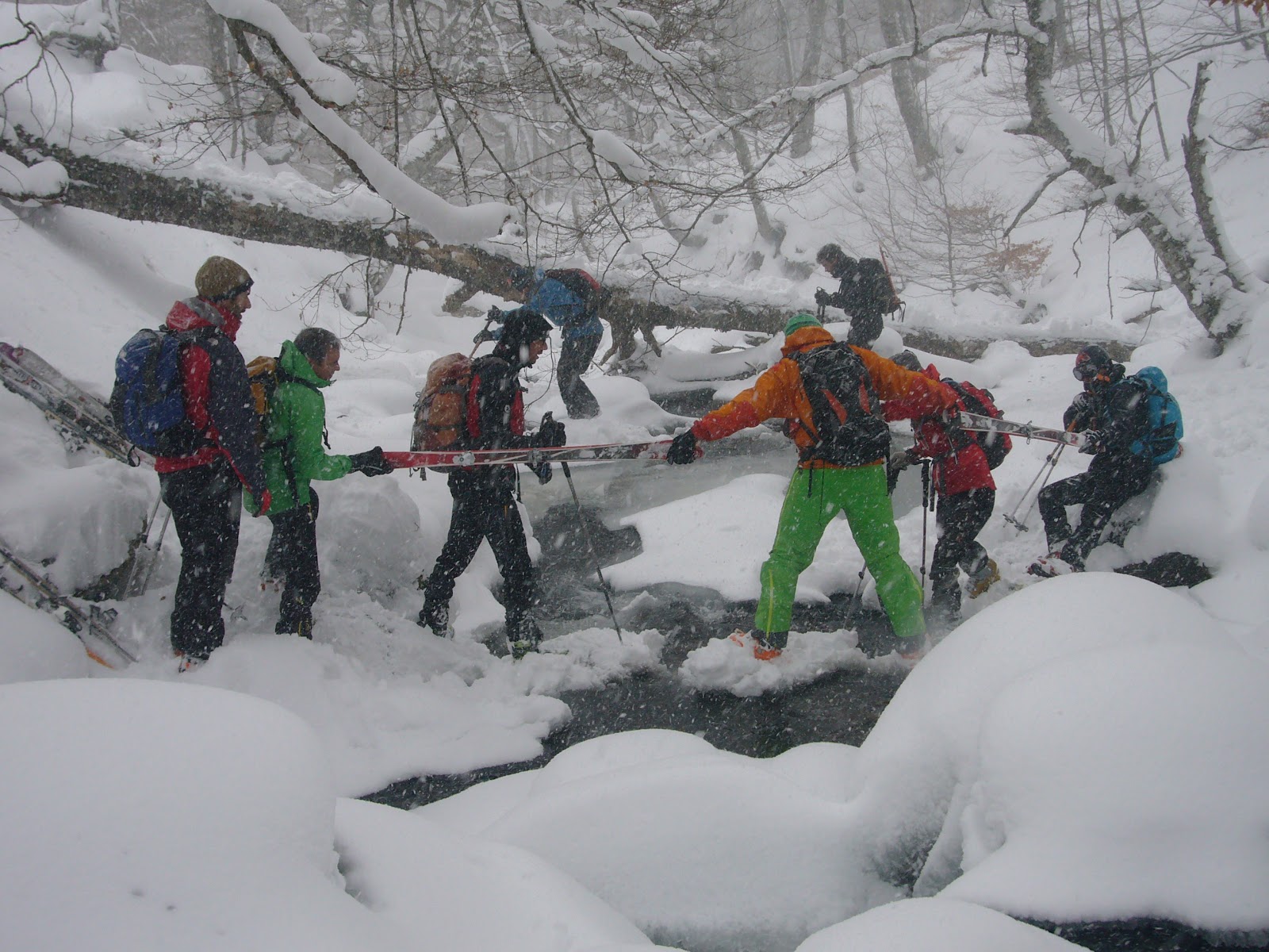 Una de las veces que pasamos el río, cadena humana!! Menudas risas nos echamos...